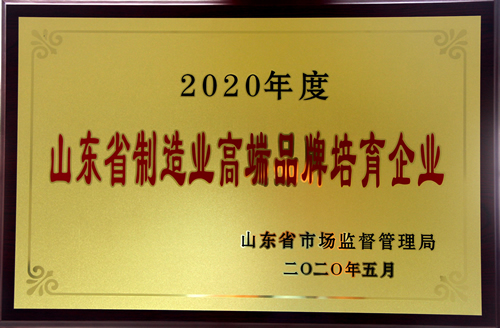 2020年5月8日,由中共山東省委宣傳部、山東省發展和改革委員會、山東省市場監督管理局、煙臺市人民政府共同主辦的山東省2020年“中國品牌日”活動在煙臺舉行,公司入選2020年度山東省高端品牌培育企業名單。