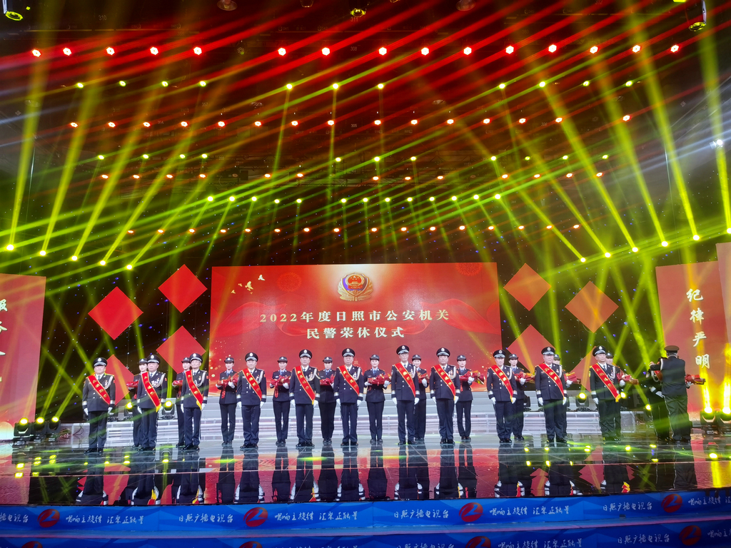 當(dāng)天19:00,在日照廣播電視臺(tái)演播大廳,隆重舉辦了報(bào)告演出。日照市副市長、公安局局長李剛致辭。會(huì)上隆重舉行了2022年度警銜晉升儀式、2022年度民警榮休儀式、表彰了“人民滿意的派出所”等先進(jìn)集體,中間通過精彩的節(jié)目,生動(dòng)地將反詐騙、刑偵偵察、維護(hù)交通秩序等呈現(xiàn)在舞臺(tái)上,展現(xiàn)了日照公安為人民的良好作風(fēng),同時(shí)也讓廣大市民了解各種法律法規(guī)知識(shí),并起到了很大的反響,并紛紛表示在生活、工作中,一定會(huì)根據(jù)匯報(bào)內(nèi)容,做好宣傳工作,普及法律法規(guī)知識(shí)。